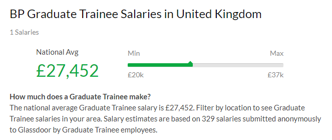 英国石油公司(BP)的管培生平均年薪是2.7万英镑。