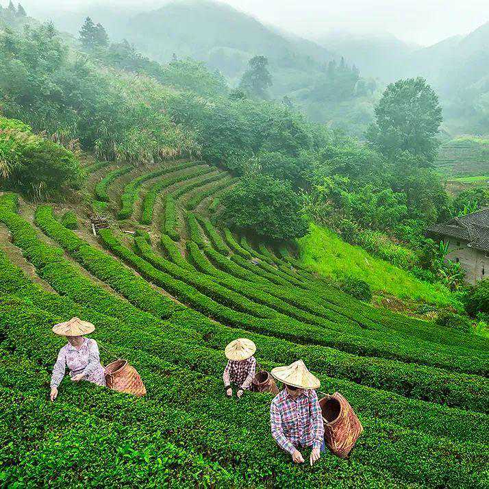 采茶,造茶之始,虎口对芯,接连天地,不可不察。拇食双指,芽顶下插,稍扭上提,转眼瞬间,芽梢入篓,既护芽梢,又惜芽叶,万颗茶芽,百日功夫。