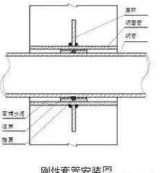 1.刚性套管安装:主体结构钢筋绑扎好后,按照给排水施工图标高几何尺寸找准位置,然后将套管置于钢筋中,焊接在钢筋网中,如果需气割钢筋安装的,安装后必须用加强筋加固,并做好套管的防堵工作。刚性套管安装如图所示: