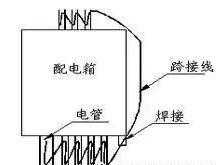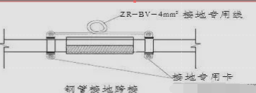 4.钢管丝扣连接时在管接头的两端装设专用接地跨接线,如图。