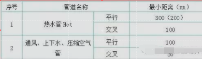 4.暗配电线管路与其它管道最小距离,如下表所示: