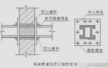 7.封闭插接母线在穿过墙及防火楼板时,在母线周围填充防火堵料,具体做法见上图。