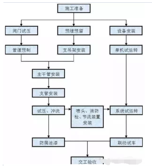 消防工程最全的施工方案流程消防预留预埋施工3.1、消防预埋1.预留预埋是给排水专业在主体施工中的工作重点。预留预埋准确与否对整个安装工程至关重要。它将直接影响给排水安装的顺利进行。2.施工准备期间,专......