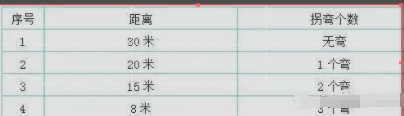 ⑷路长度每超过15m,有两个弯曲弯曲;
