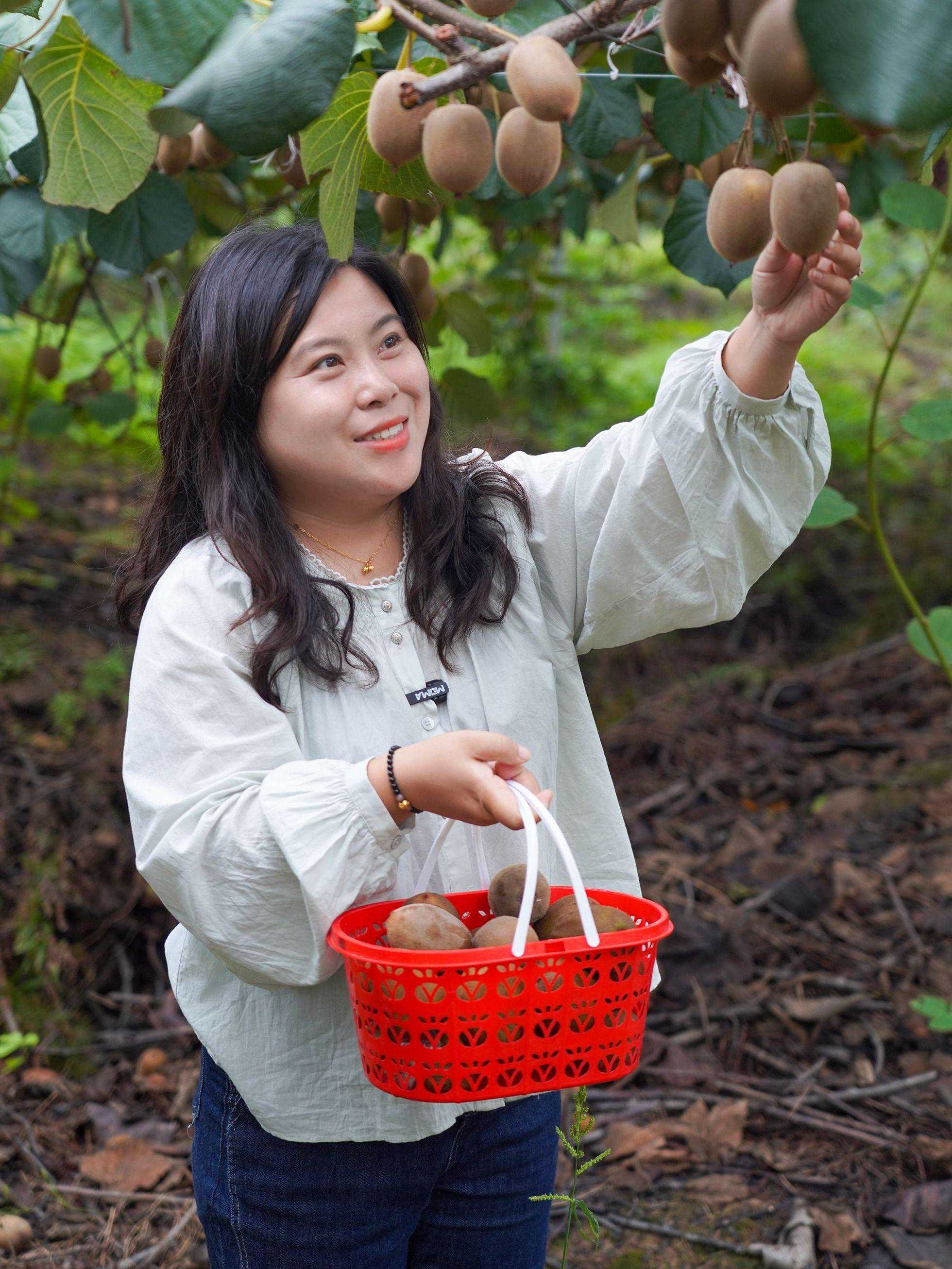 “90后”农业职业经理人邱诗情正在采摘猕猴桃。新洲区融媒体中心王林峰摄