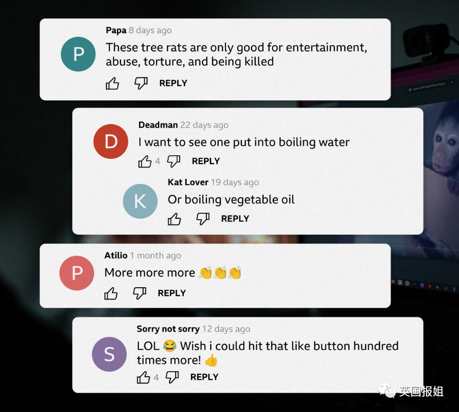 猿先生会联系印尼的养猴人,让他们按照群友说的虐待小猴,并按次支付费用。