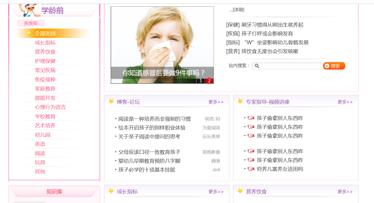 新浪旗下的亲子频道里面按照孩子的年龄来区分,从导览就能迅速的找到日常需要的关于孩子的知识点,这个网站适合日常家长去看看,对付猫狗都嫌弃年龄的孩子还是有点用的~