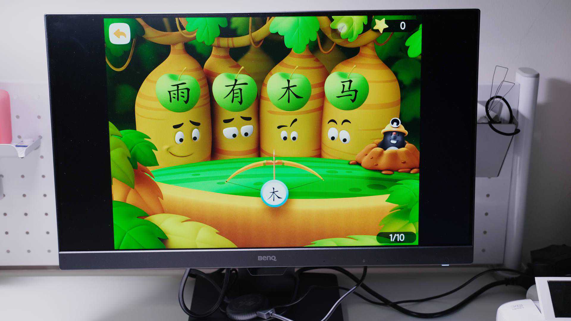 家里的手机,IPAD虽说都是很不错的移动学习设备,但是毕竟屏幕大小有限。孩子一直盯着看肯定看视力消耗肯定厉害。所以屏幕要大,这事关键。这款明基2485TC可以通过一个随机配赠的投屏连接器实现将手机或者IPAD的小画面投放在23.8寸电脑大屏幕上。