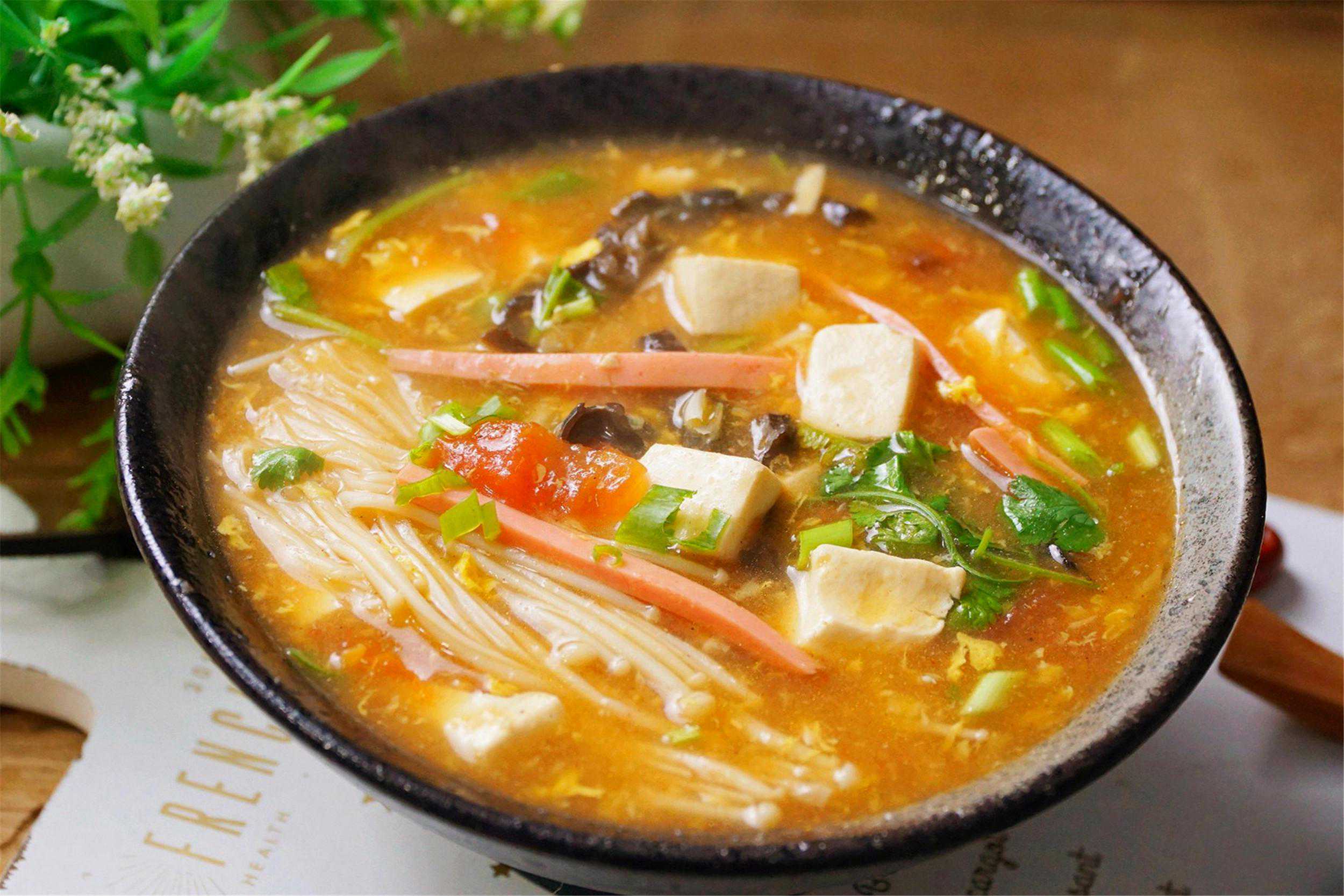 酸辣豆腐汤天气愈发寒冷,喝腻了甜汤,不妨尝试一碗酸辣豆腐汤,口感润滑的嫩豆腐随意搭配一些食材,加入胡椒粉、香醋等煮上片刻,喝起来酸辣可口,不管天气多冷,喝完都是直冒汗,解馋又过瘾。