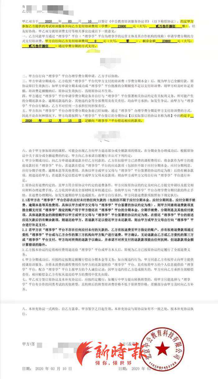 “去年加过中公教育一位老师的微信,今年3月份给我发了‘0元学’的微信,我想着疫情在家没事干,想着反正不花钱学点东西吧,就报了他们教师招聘的课程。”济南市民张华(化名)说,当时机构让她在一个叫“理享学”的平台上贷款23800元,并向她承诺如果考试不过可以退费。
