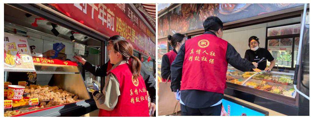 此外,工作人员还走访了周边商铺,通过上门发放社保宣传册、现场解答等方式,让商户在家门口就能了解到最新的社保政策。