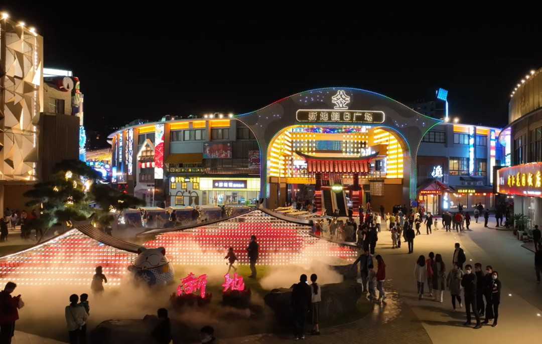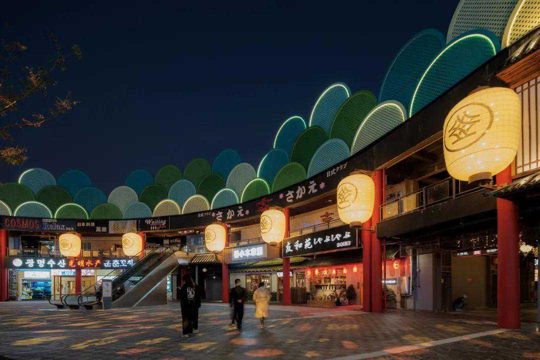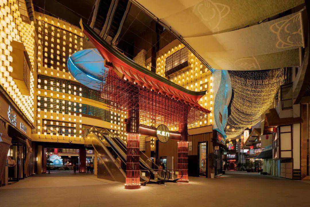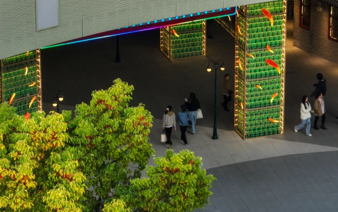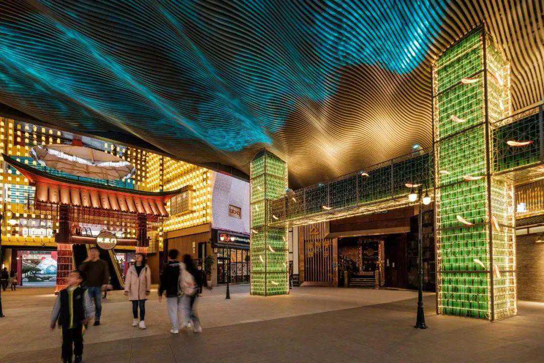随着建筑互动照明与立面投影等技术的成熟,EADG设计团队在本次设计中也努力尝试通过新技术的叠加使建筑与景观“活”起来,利用商业街夜晚人流量增多的特性,通过灯光互动,给予商家更多的展示平台和游客更多可以游玩的元素。