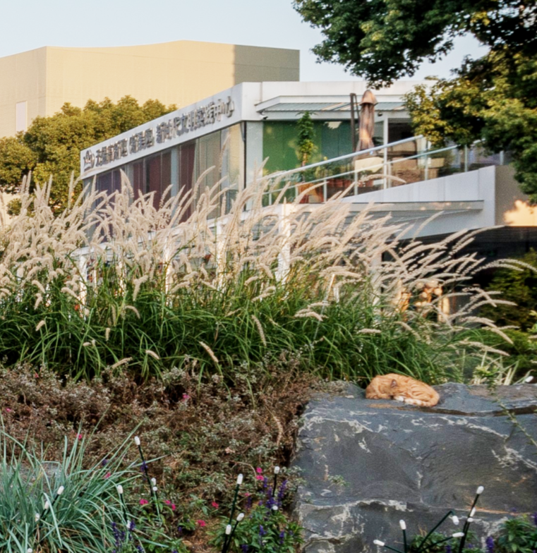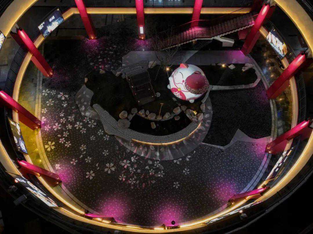 以“樱园”为主题的庭院,提取东亚风情的特色植物樱花为意向,光影流转,花影倒映地面,亭台楼阁小桥流水,设计让各个角落都能成为绝佳的拍照打卡点口,也为未来的古风演出、汉服秀提供了活动场所。