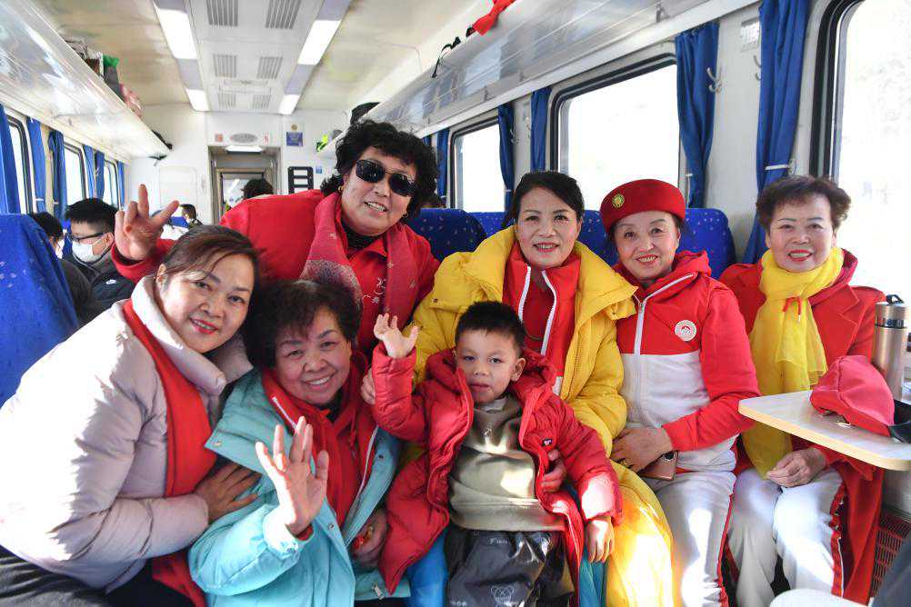 车厢里,衣着鲜艳的“奶奶团”正在热烈讨论雪景拍摄造型;大学生“背包客”三五成群,不时爆发出欢笑声;返乡的家人相互依偎,怀抱中的幼儿嘴角挂着笑意……