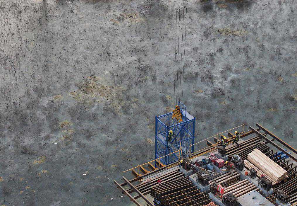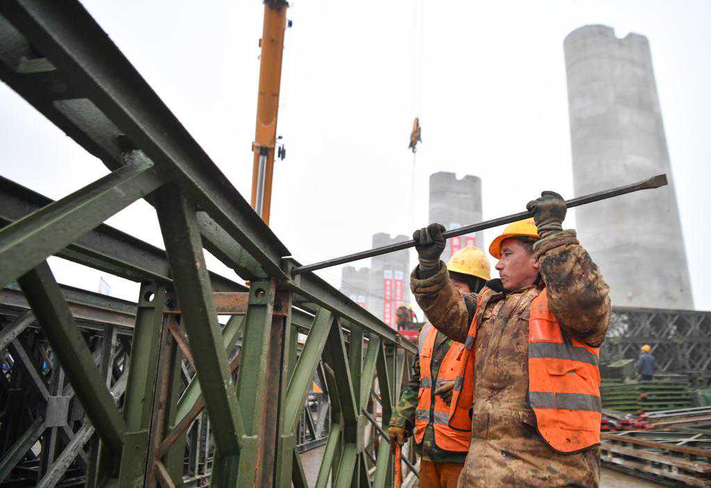 1月18日,中铁上海局工人在位于陕西省渭南市富平县的西延高铁富平特大桥施工现场工作。