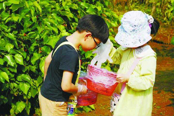 摘累累果实“参差红紫熟方好,一缕清甜心底溶。”
