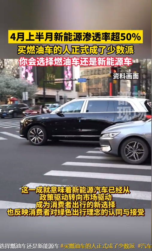 车市大逆转!油车成少数派,电车逆袭成主流!这背后有3点原因,让人直呼太无奈,太扎心了!说起现在的车市啊,简直就像是翻了个天!你知道吗?就在4月上旬,咱们国家的新能源汽车渗透率竟然首次突破了50%,达到......