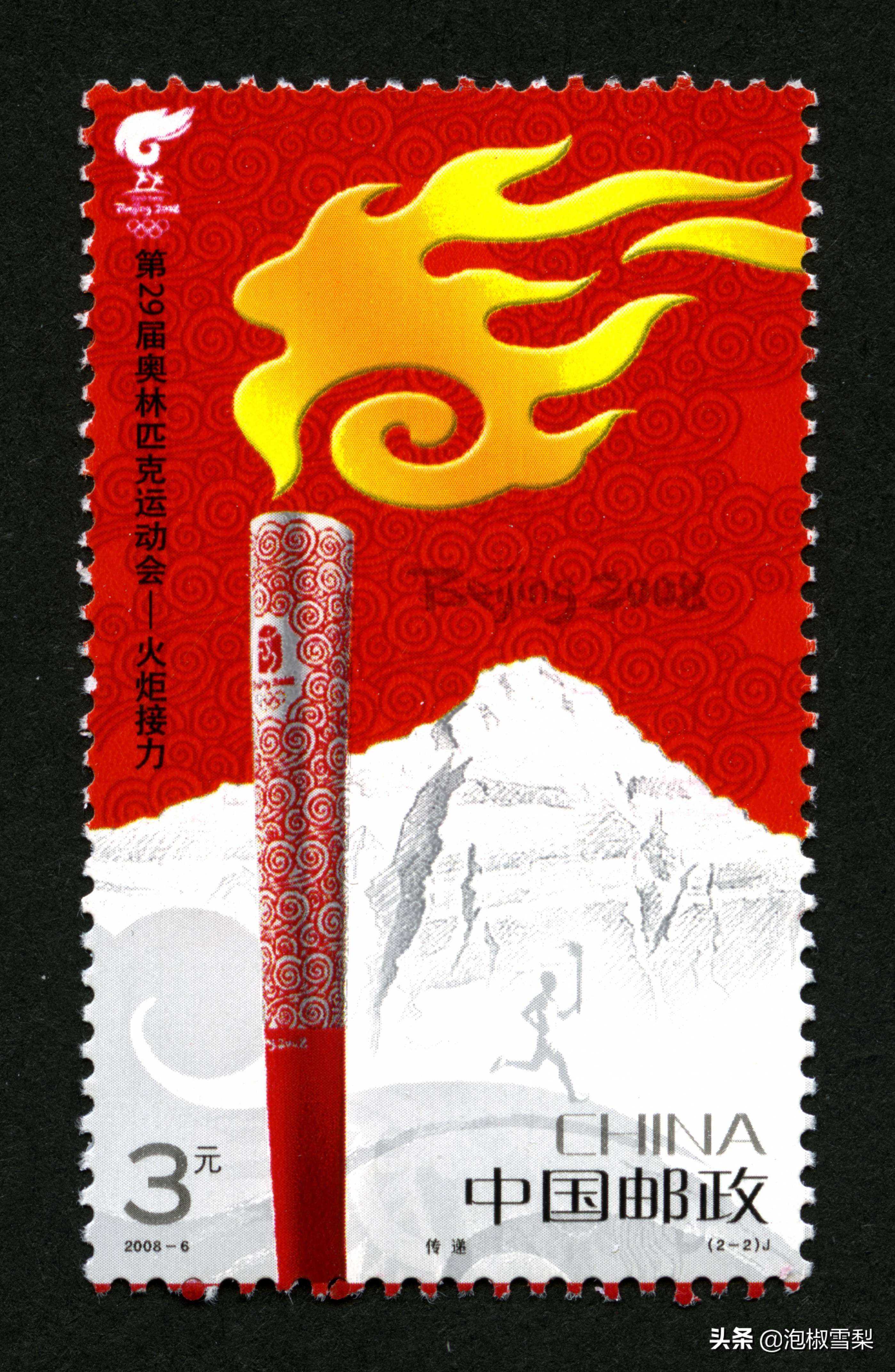 为纪念第29届奥林匹克运动会圣火点燃,国家邮政局发行了本套邮票,主体为奥运火炬,背景为祥云和喜马拉雅山,充满喜庆气息。