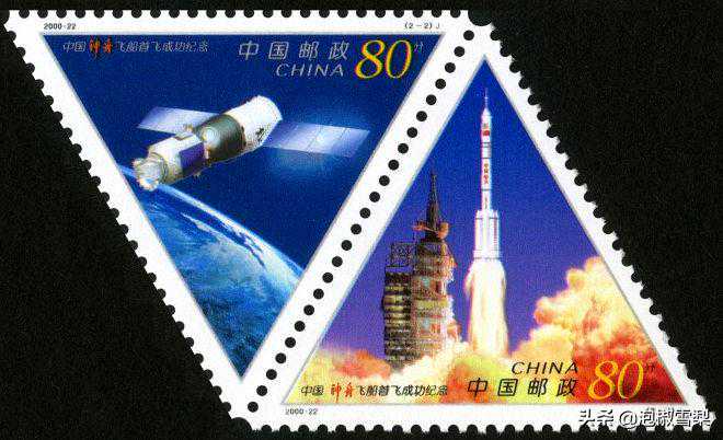 新中国第二套三角形邮票(第一套为1951年8月15日发行的“纪10-保卫世界和平(第二组)”),纪念中国载人航天工程第一艘试验飞船“神舟”号首飞成功一周年。