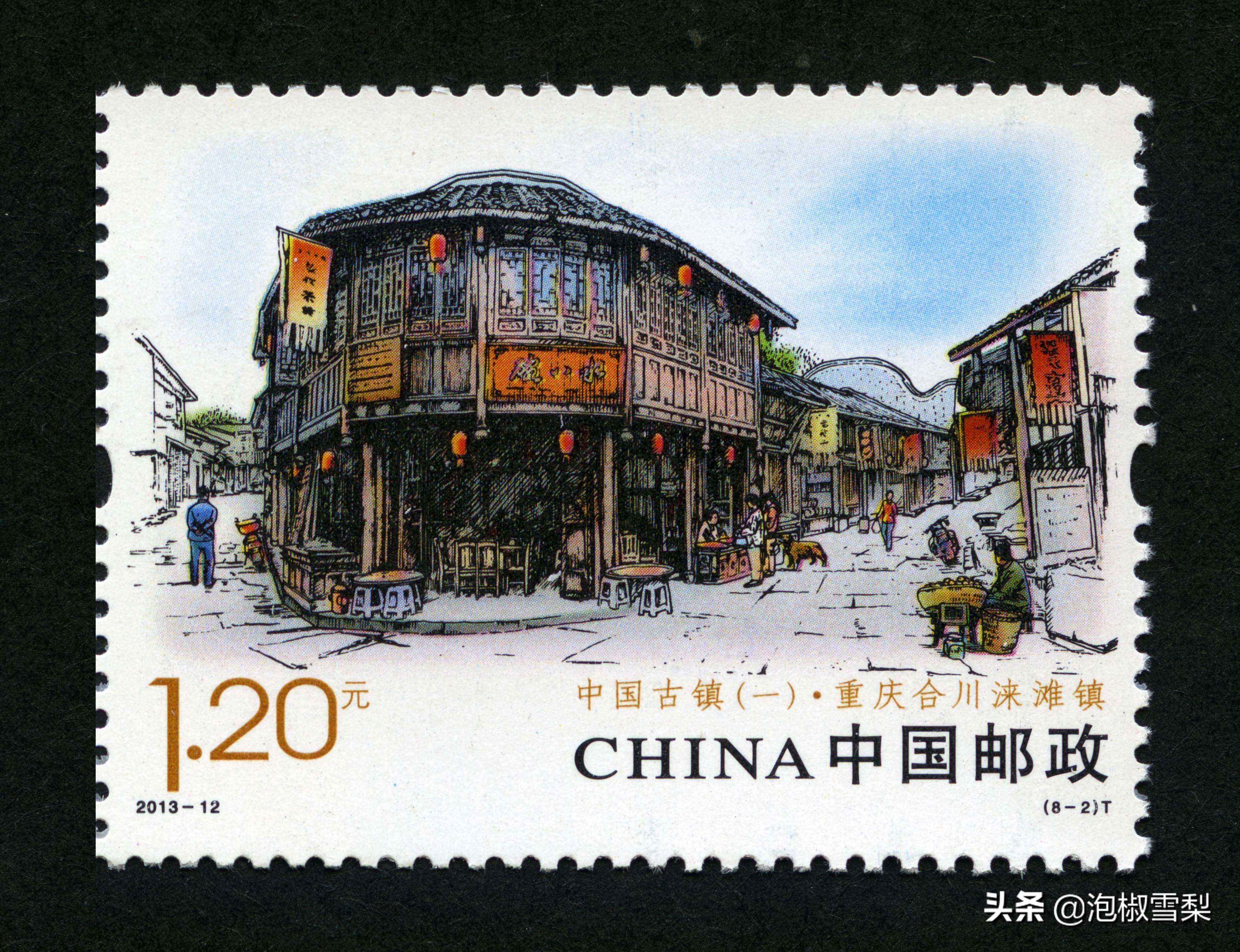 中国古镇系列邮票清新简约,雕刻版线条层次丰富,古香古色。实景经过钢笔画重新绘制,赋予了更多文化韵味,是非常优秀的一个系列邮票。