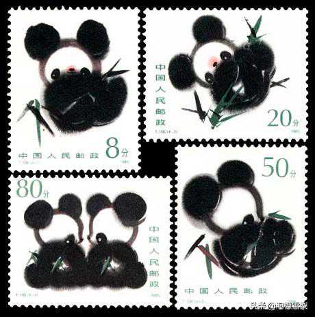 邮票采用水墨风格描绘了熊猫憨态可掬的形象,可爱动人,趣味十足。