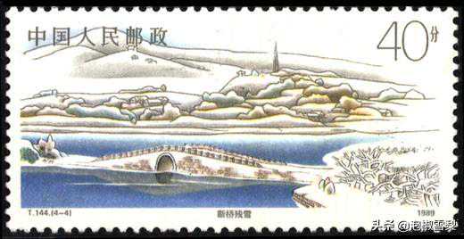 邮票的四枚展现了西湖的四季美景,设计者刘向平,画面布局恰到好处,用色自然,其中“断桥残雪”是该套邮票的上乘之作。
