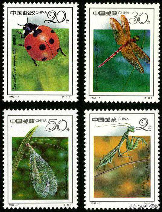 邮票设计者殷会利,利用结构布局增加了昆虫的层次感,在模糊的背景下使其呼之欲出,配合草体字的面值,设计感超前。