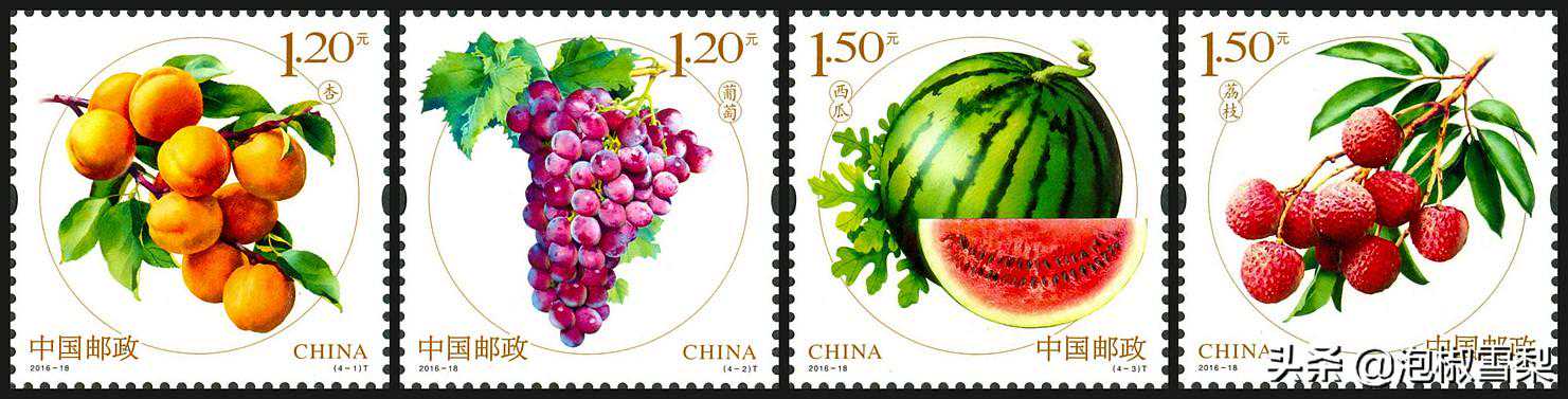 水果系列邮票采用写实手法,活色生香的体现了各种常见水果,果实饱满成熟,使人观之充满食欲。邮票采用香味油墨印刷,用手轻搓票面会有对应水果的香味。