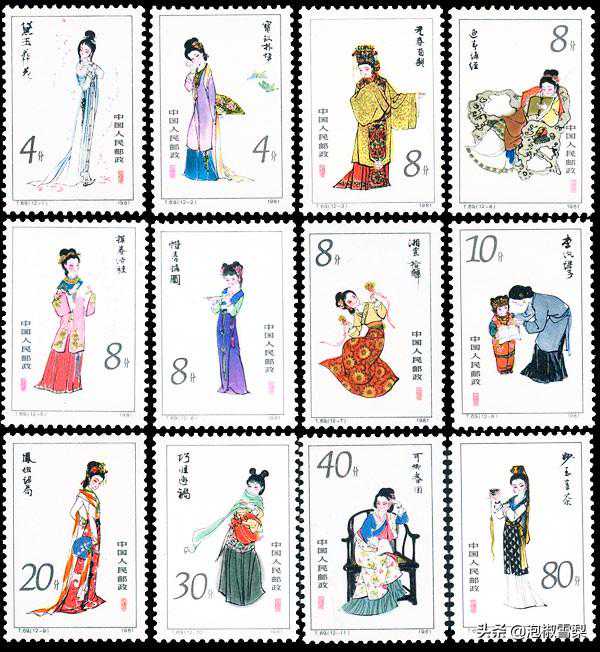 邮票采用刘旦宅的绘画作品,人物造型清俊,邮票虽无背景,但一颦一笑都将故事背景进行了“描绘”,入木三分,是名著类邮票中的珍品。