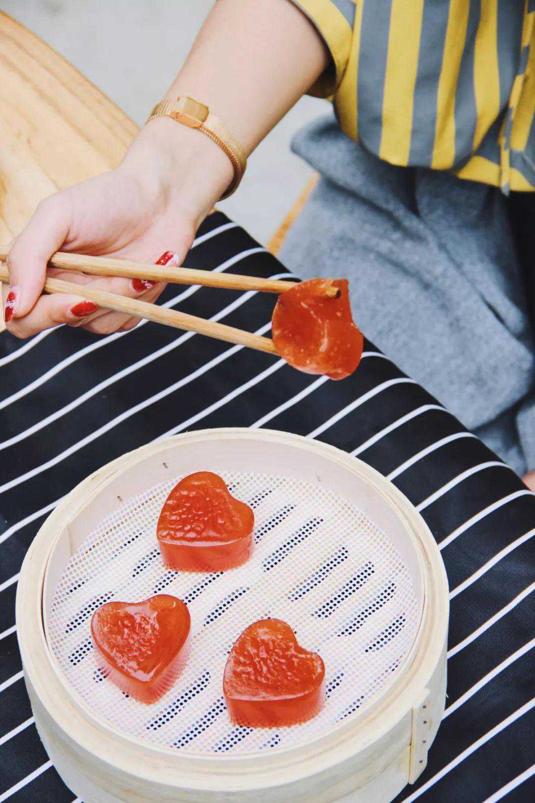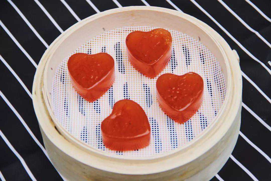 红枣糕算是广式甜点,用红枣面粉制作而成。在“拾光”里连红枣糕都是爱你的形状,是老板特别用心的买了模具,特意把它做成了这样。