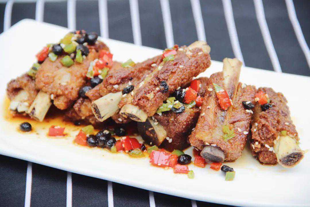 排骨是炸过的,在炸之前老板先用大料将排骨卤入味,再加上豆豉、菜椒、芝麻爆炒。