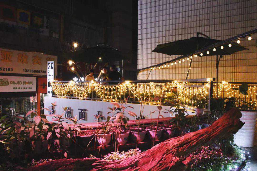 小酒馆的本身其实并不大,主要是酒馆侧门的小阳台。华灯初上,这里就像是爱丽丝不小心掉入的后花园。