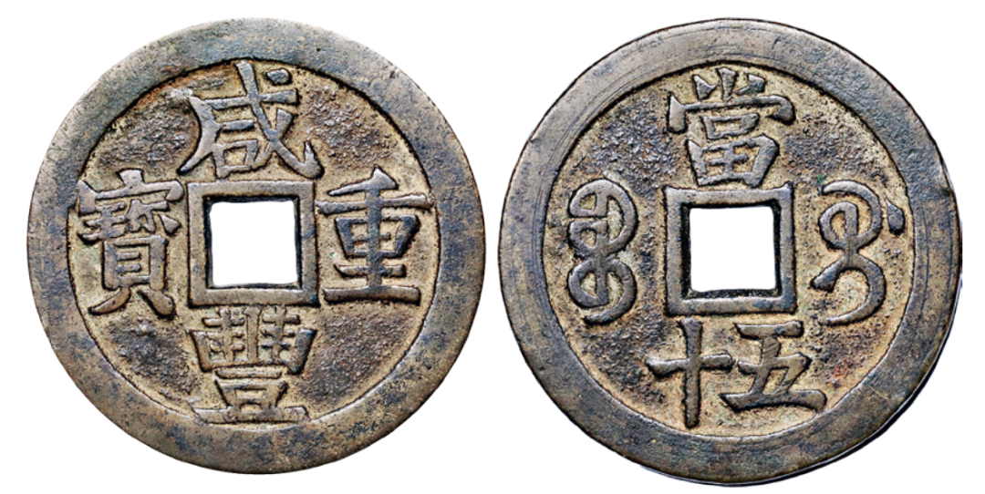 古钱方面,本季南京三省秋拍将推出的重点,当数清咸丰元宝宝泉当千与清咸丰重宝宝桂当五十。