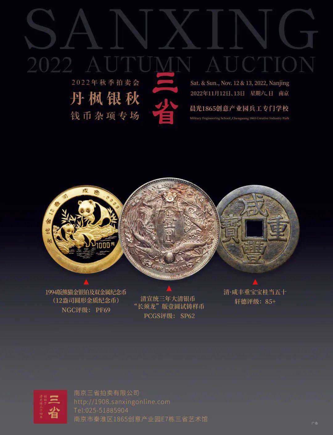 如今,契机即将到来!11月19日,“丹枫银秋·2022三省秋季拍卖会”将在南京晨光1865创意产业园正式举槌,以近千件甄选而出的精品,旨在为钱币收藏家与爱好者带来一场不一样的秋日“视觉盛宴”。