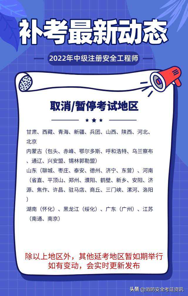 2022年中级注册安全工程师补考时间将于明天、后天两天时间进行,目前已经累计43个地区宣布取消补考通知。