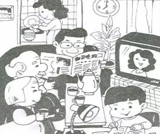 晚饭之后,我们一家人有的在洗碗,有的在看电视,有的在看报纸,还有的在写作业。