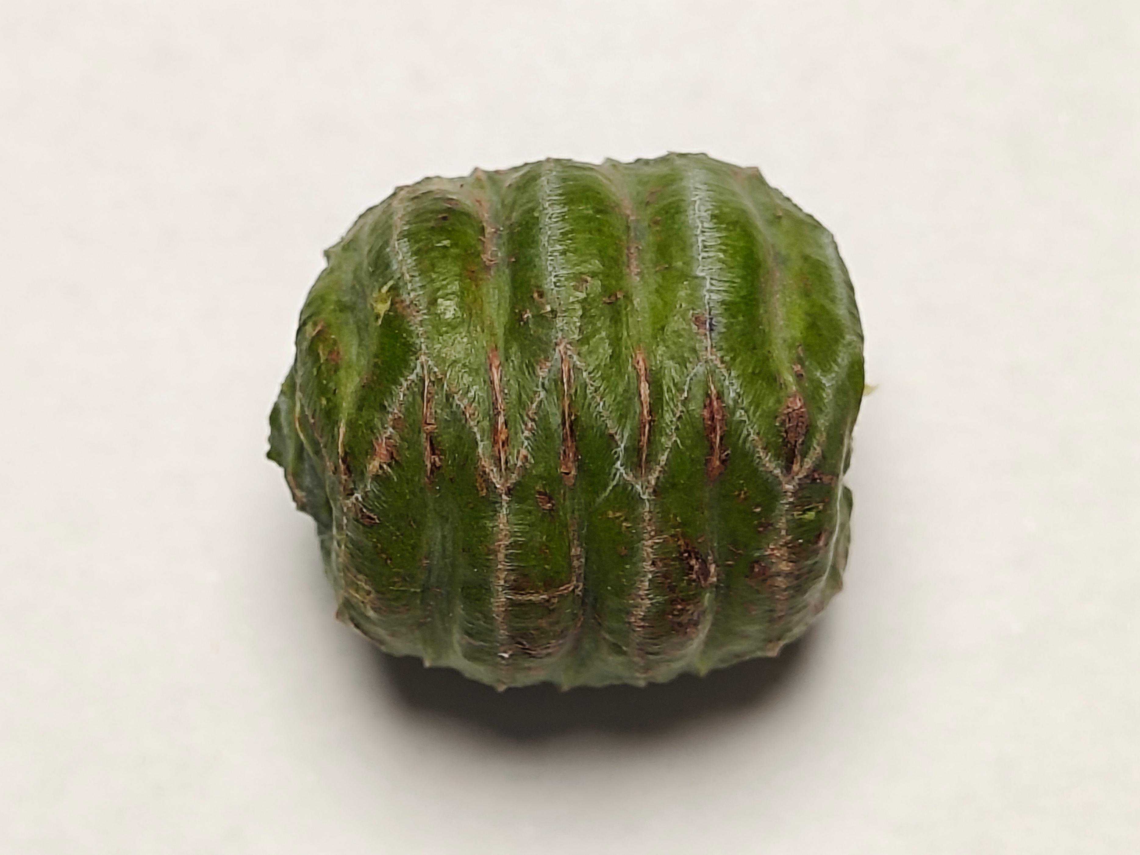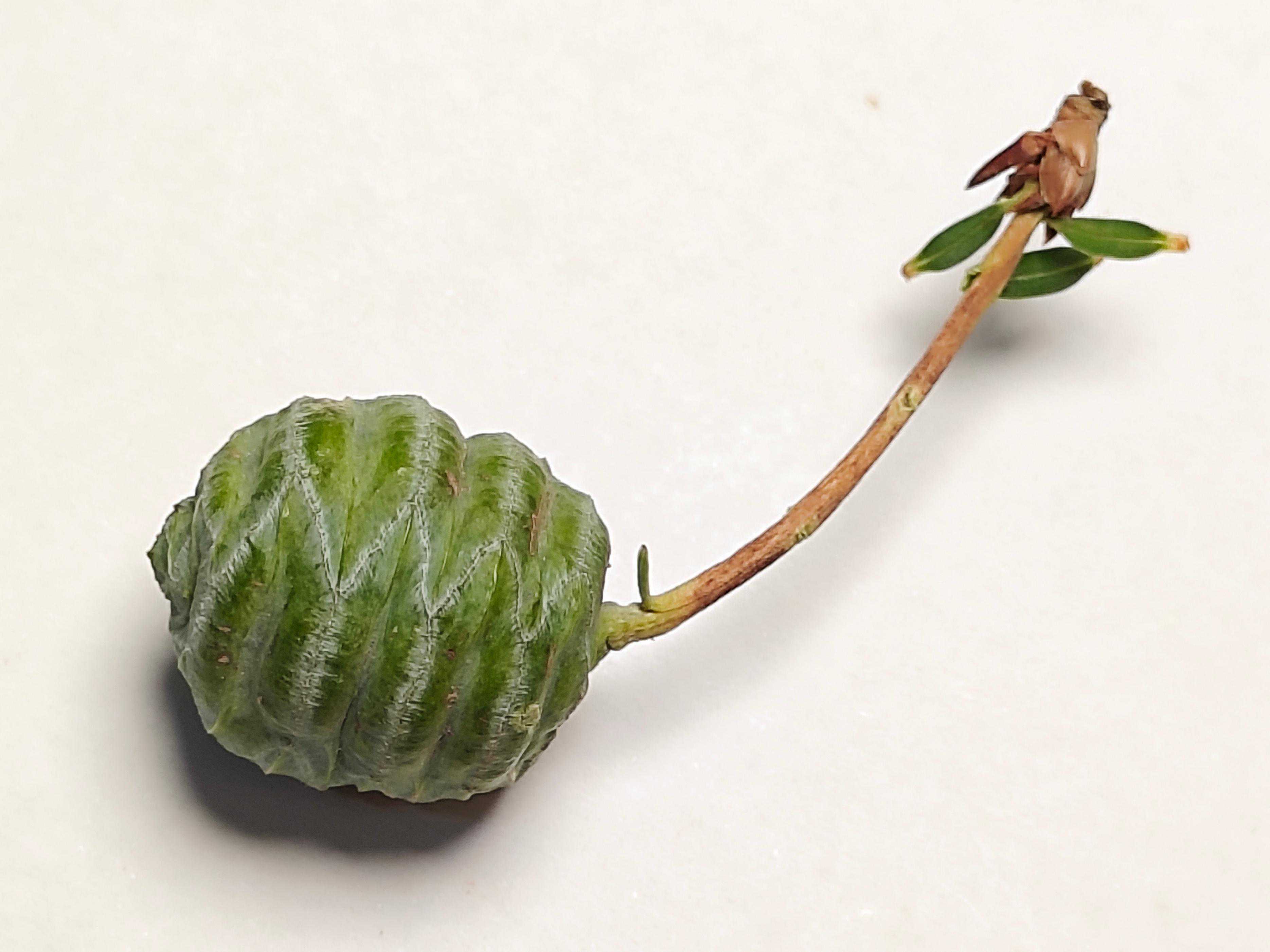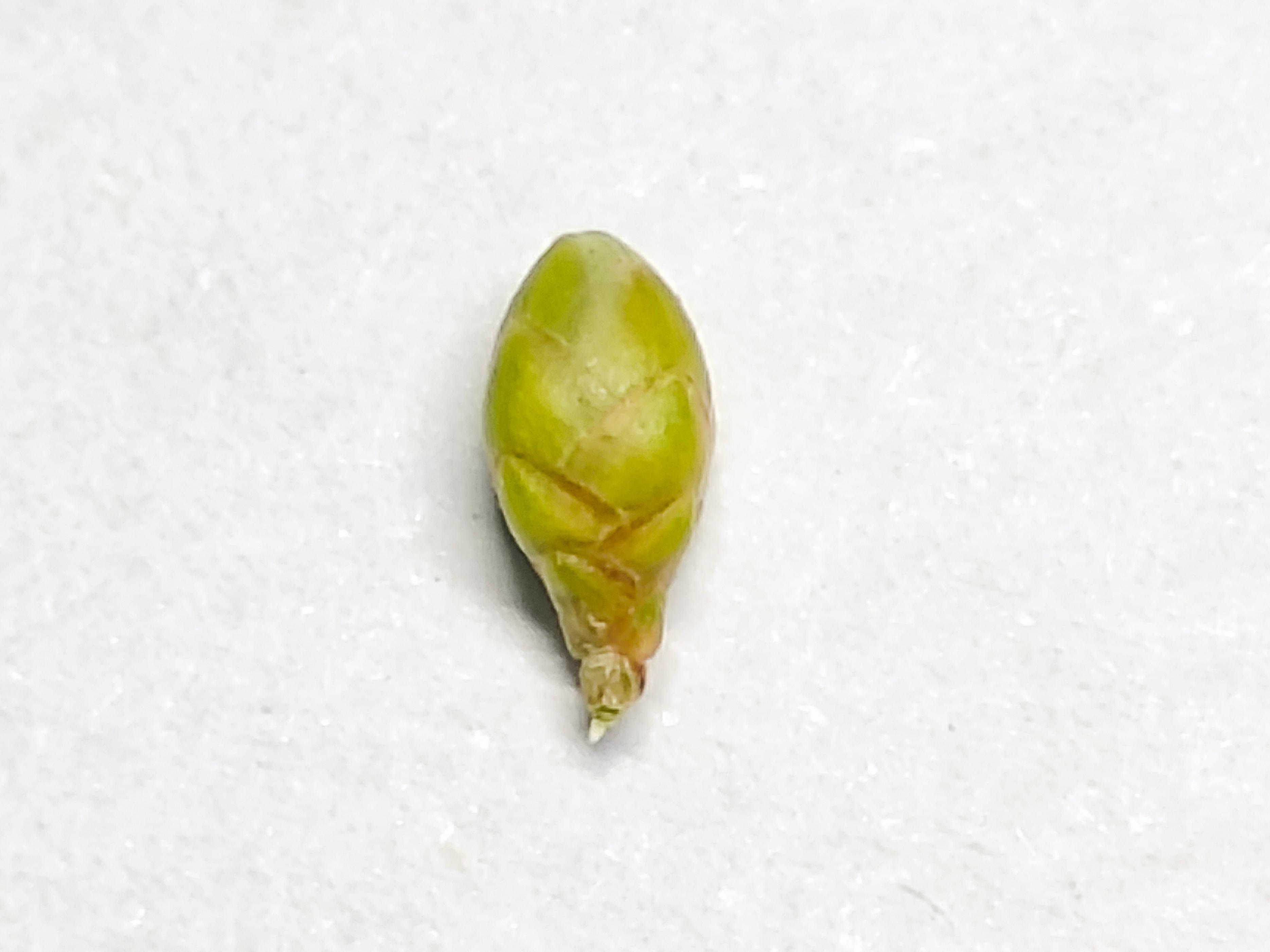 这时再回去看它的整体形状,它的种鳞左右之间是交互对生的,这就很容易理解它的四棱形状了,一个球果种鳞通常是11——12对。