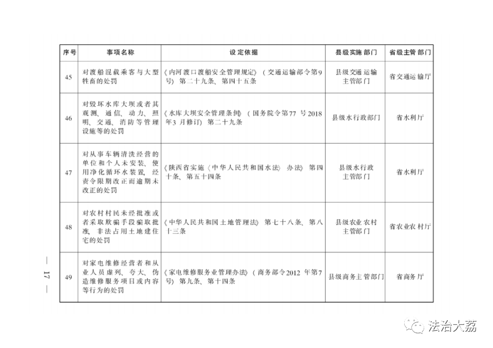 1.陕西省下放乡镇政府和街道办事处行政执法事项指导目录