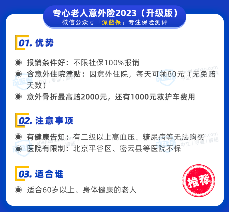 最后是推荐给家里老人买的意外险:专心老人意外险2023(升级版),平安产险出品,每年只要两百多块钱,很划算。