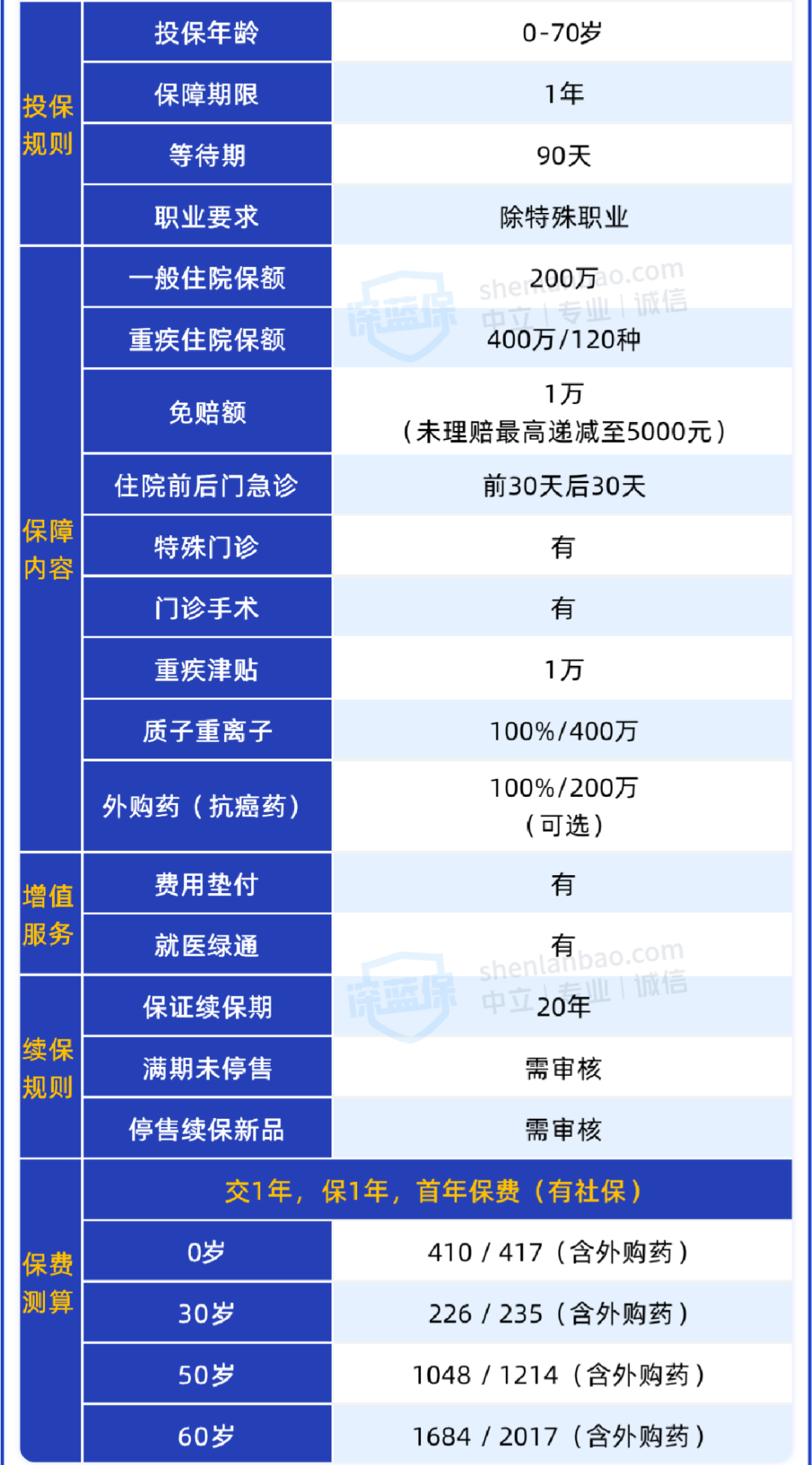它最大的亮点就是能保证续保20年,目前市面上能做到这一点的产品,可以说是屈指可数了,而且保障也做得特别扎实: