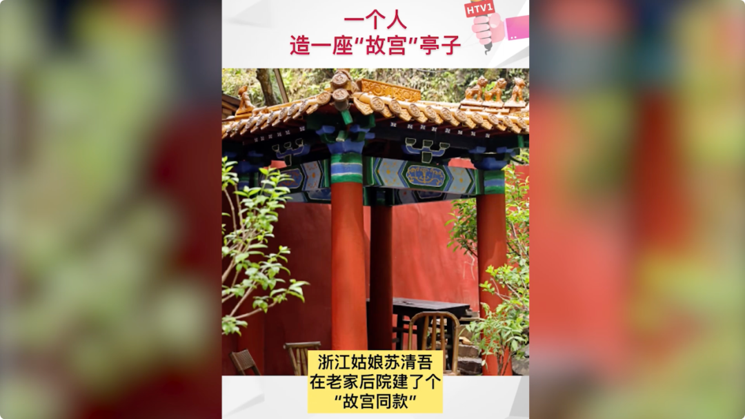 国风爱好者@苏清吾一个人造了座“故宫同款”亭子。