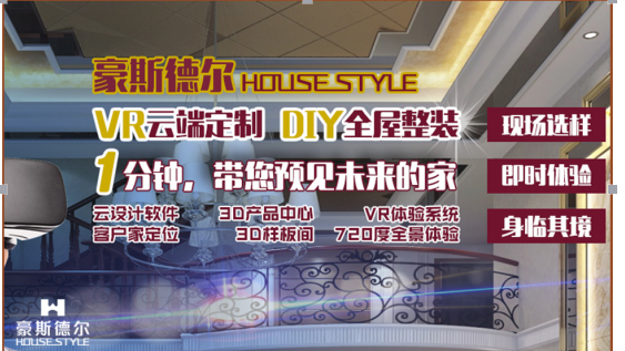 早在去年六月,豪斯德尔020智能装修平台2.0版上线,用vr虚拟现实做全屋整装!经过努力,豪斯德尔实现了云设计平台、官方商城、VR虚拟体验的综合评测,真正为客户解决了:户型定位、设计搭配、小区引爆、微信推送、vr体验、在线下单、线下服务的完美闭环,为我们进入装饰行业打下坚实基础!豪斯德尔十年磨一剑,VR一出,谁与争锋!