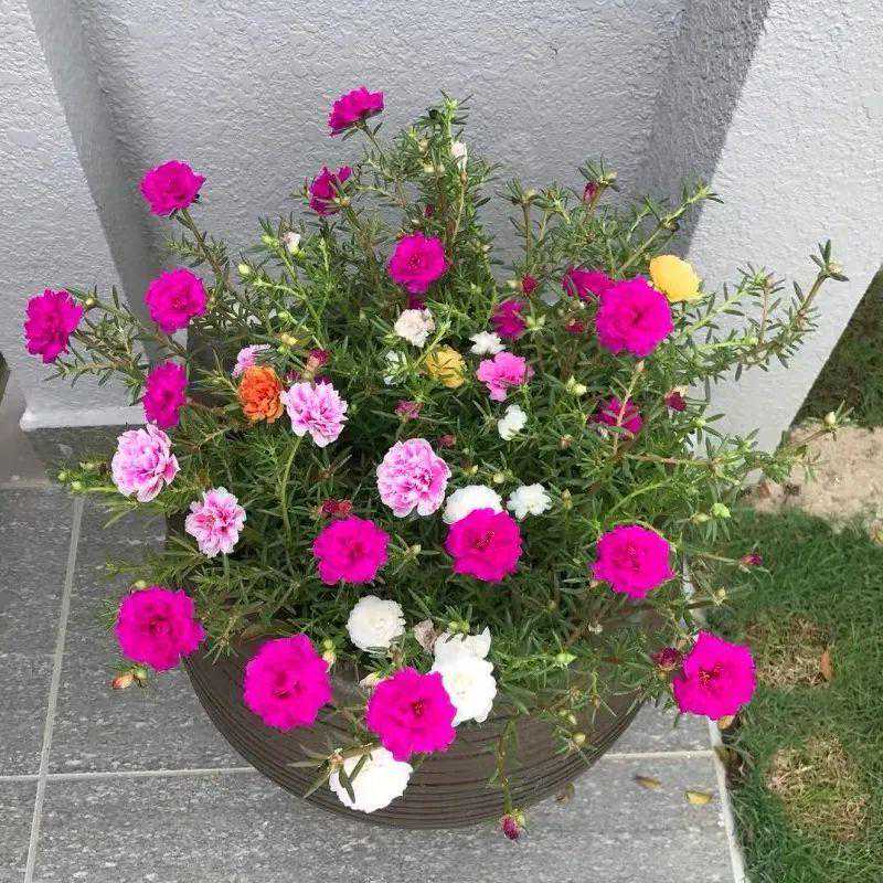 太阳花又叫松叶牡丹、半枝莲、死不了等,是一种很受大家喜爱的观赏植物,它生命力顽强,好养又易爆盆,条件适宜、养护得当的话,几乎全年都能开花,是一款很适合新手养护的花卉。它园艺品种较多,植株娇小丰满,枝叶密集,细圆柱形的肉质叶片翠绿光洁,一朵朵俏丽的花朵在阳光下使劲地张开,阳光越强、开花越艳丽,花繁色艳,观赏价值极高。家里养上几盆,五颜六色的花朵沐浴在阳光下,繁花似锦、清丽又雅致。