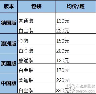 由于生产成本的差异,再加上各国政府补贴政策不一样,如:澳洲、新西兰政府补贴少,德国爱他美需要进口瑞士奶源,所以各版本的售价不太一样,总体来看,英国爱他美性价比最高。但每种版本不同包装、不同段位的价格也是有差异的,白金装价格高于普通装,因为价格也是时有变化的,所以小编参照京东自营各奶粉的售价,整理出平均价格,供大家参考。