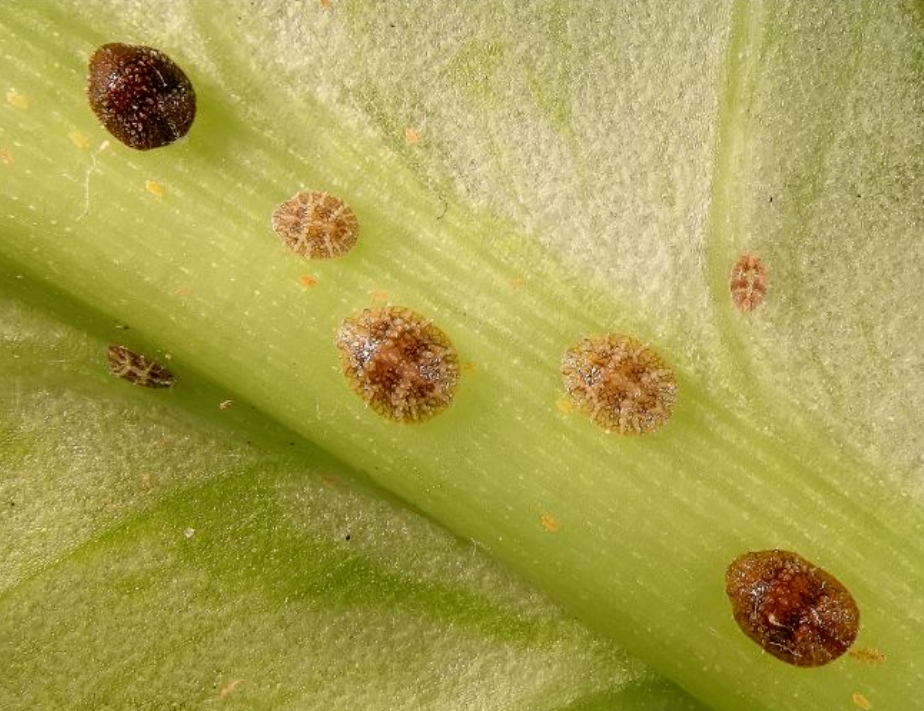 上面是橡皮树感染的介壳虫