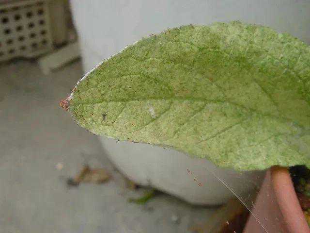上面是红掌叶子上的红蜘蛛