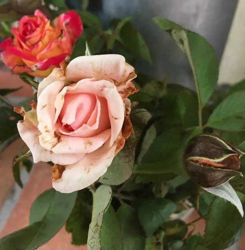 上面是被蓟马祸害的月季花