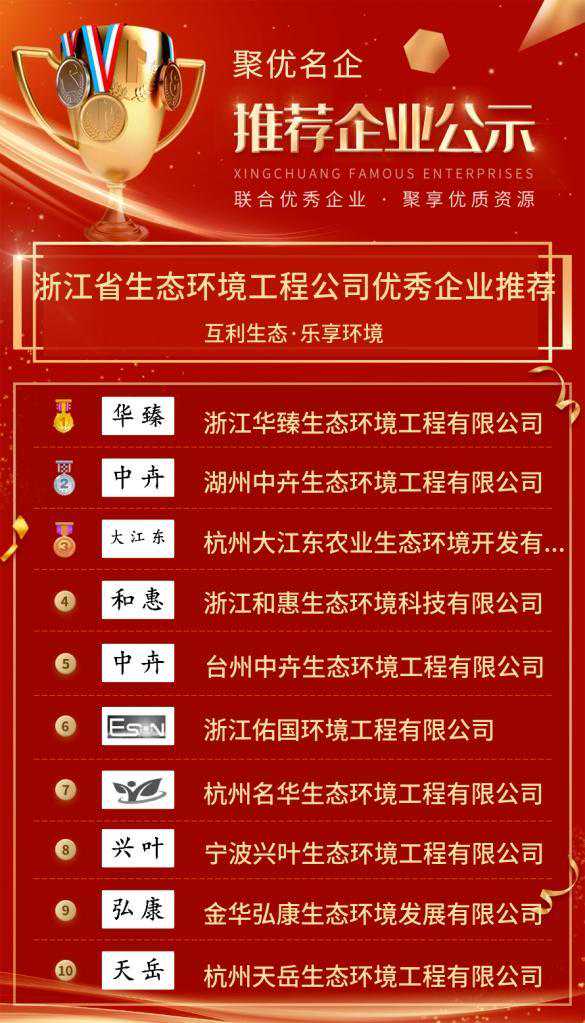 中国的生态和环境变化态势是稳中有好但改善缓慢。在新时代背景下,贯彻以人为本的科学发展观,从生产、消费、贸易等领域全方位加速经济发展方式转变,从制度层面形成全社会资源节约、环境友好型发展的合力,优先解决危害人民群众健康的环境问题和实行对环境质量的健康风险管理。为了促进企业健康发展,“聚优名企”通过征集广大网友对企业支持数据,选出了浙江省生态环境工程公司优秀企业,现将对征选结果予以公示: