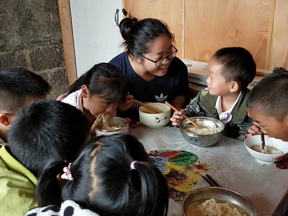 韩永丽老师与乡村孩子一起吃早餐