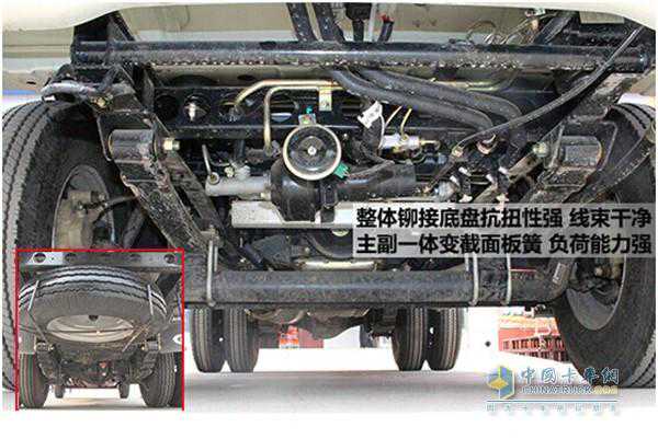 对于微卡来说,承载至关重要。时代驭菱V1采用整体铆接底盘抗扭性强、适合各种复杂路况,同时,前后悬架采用主副一体变截面板簧、超负荷能力强,